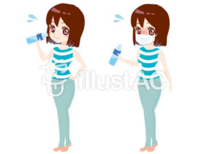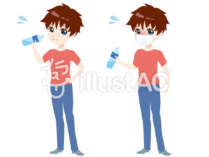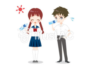 というわけで、水分補給をする男女のフリーイラストを制作しました。